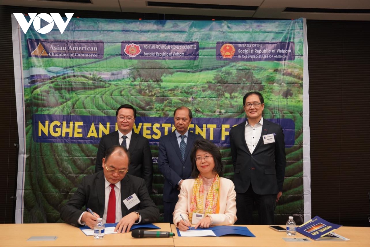 Tại Diễn đàn, Chủ tịch Ủy ban nhân dân tỉnh Nghệ An, Nguyễn Đức Trung, giới thiệu khái quát về các điều kiện, tiềm năng, lợi thế phát triển của địa phương; đồng thời nhấn mạnh Nghệ An đã sẵn sàng các điều kiện để thu hút các nhà đầu tư nước ngoài. Dịp này, Ban Quản lý Khu kinh tế Đông Nam ký biên bản ghi nhớ hợp tác với Phòng Thương mại người Mỹ gốc Á.