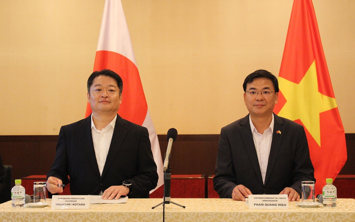 Về phần mình, Đại sứ Việt Nam tại Nhật Bản - ông Phạm Quang Hiệu cho biết, tỉnh Yamanashi hiện nay là một trong những hình mẫu trong thúc đẩy hợp tác giữa các địa phương của Nhật Bản với các địa phương của Việt Nam, nổi bật nhất là hợp tác phát triển nguồn nhân lực. Đến nay, số lượng lao động Việt Nam tại tỉnh Yamanashi khoảng hơn 3.000 người - đông nhất trong số lao động nước ngoài đang làm việc tại địa phương này và ngày càng tăng lên nhanh chóng. Đại sứ Phạm Quang Hiệu cũng bày tỏ, với việc áp dụng chế độ bảo hiểm y tế mới này, đất nước Nhật Bản nói chung và tỉnh Yamanashi nói riêng sẽ trở thành điểm đến hấp dẫn của lao động nước ngoài, trong đó có lao động Việt Nam: