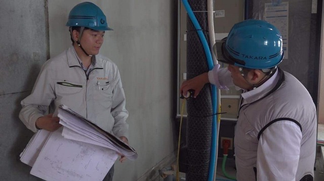 Kỹ sư Viêt Nam đang trao đổi nội dung công việc với đồng nghiệp Nhật Bản tại công trình của Cong ty thi công đường nước Takara |