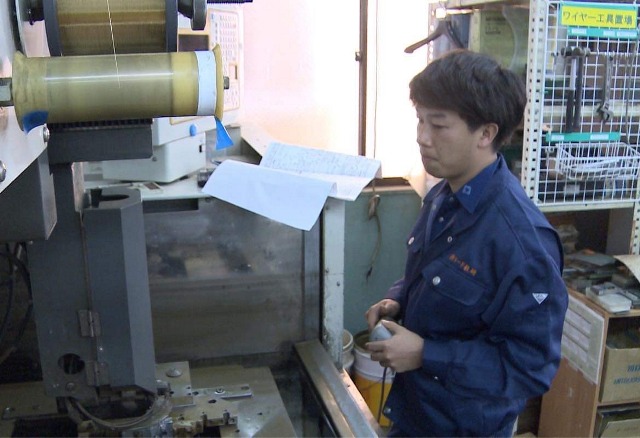 Thực tập sinh Việt Nam đang giám sát hoạt động của máy gia công cơ khí tại Công tygia công cơ khí chính xác Lead Giken |
