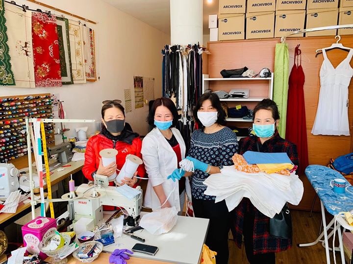 Giá một chiếc khẩu trang vào khoảng 3-5 €. Nhưng người góp công, người góp của, không quản ngại mệt nhọc, những chiếc khẩu trang vải của người Việt được gửi tới những người trên tuyến đầu chống dịch.