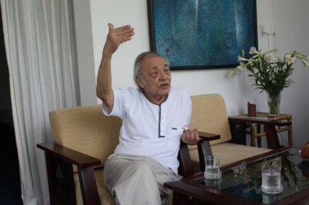 | Họa sĩ Lê Bá Đảng đang nói chuyện tại Trung tâm nghệ thuật Lê Bá Đảng (Huế) vào năm 2010 - Ảnh: Võ Xuân Huy |