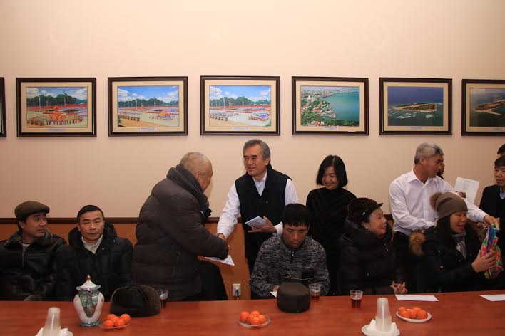 Đại sứ Việt Nam tại Ukraine Nguyễn Minh Trí tặng quà cho bà con gặp khó khăn
