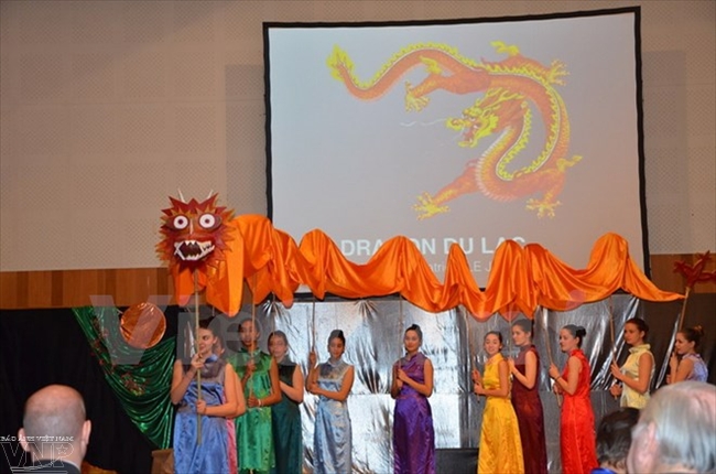 | Lễ rước rồng do các em nhỏ thành phố Choisy Le Roi thực hiện. (Ảnh: Vietnam+) |