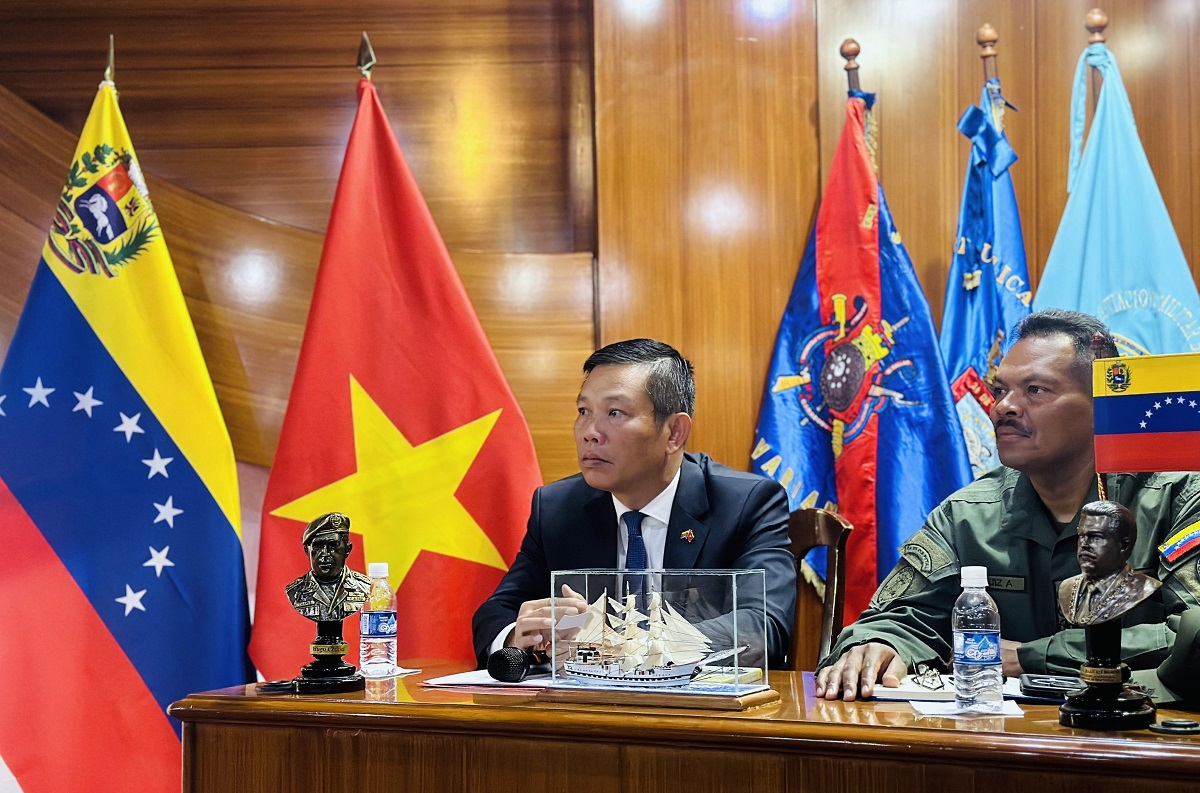 Trong khuôn khổ các hoạt động kỷ niệm 80 năm Ngày thành lập Quân đội nhân dân (QĐND) Việt Nam (22/12/1944-22/12/2024) và 35 năm Ngày hội Quốc phòng toàn dân, hôm qua (20/11, theo giờ địa phương), Đại sứ quán Việt Nam tại Venezuela phối hợp với Học viện Tác chiến Chiến lược (IESEOFANB) - Bộ Quốc phòng Venezuela tổ chức buổi tọa đàm về chặng đường hình thành và phát triển của QĐND Việt Nam.