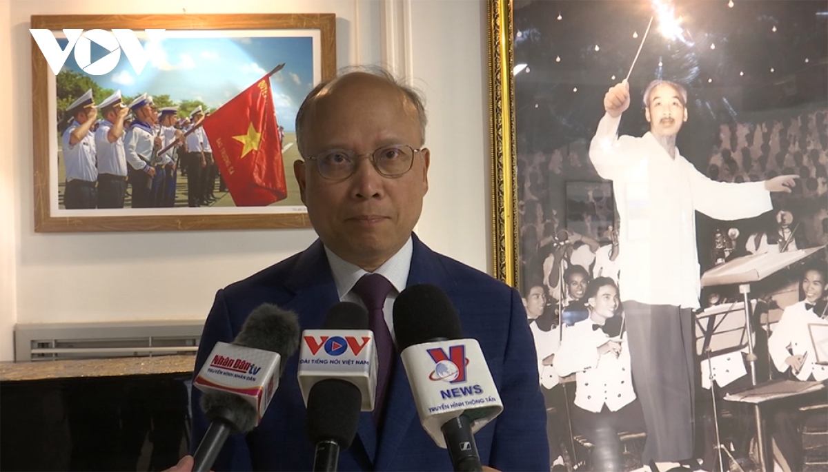 “Tổng Bí thư Nguyễn Phú Trọng qua đời là một mất mát lớn lao đối với đất nước ta, dân tộc ta. Tổng Bí thư Nguyễn Phú Trọng cầm lái, chỉ đạo đất nước ta, dân tộc ta vượt qua những thách thức, khó khăn trong thời gian qua và giành được những thắng lợi vô cùng to lớn, cả về phát triển đất nước, cũng như mặt trận đối ngoại. Trước sự ra đi của Tổng Bí thư Nguyễn Phú Trọng, cán bộ các cơ quan đại diện Việt Nam tại Pháp, cũng như cộng đồng kiều bào tại Pháp và bạn bè Pháp, vẫn luôn ghi nhớ trong lòng những chỉ đạo của Tổng Bí thư về quan hệ Việt-Pháp. Đó là huy động kiều bào, bạn bè, tranh thủ sự ủng hộ tích cực trong việc phát triển quan hệ giữa hai nước, để phục vụ cho sự phát triển và tâm thế của đất nước, cũng như xây dựng cơ đồ của đất nước ngày càng to đẹp hơn”, Đại sứ Đinh Toàn Thắng chia sẻ.