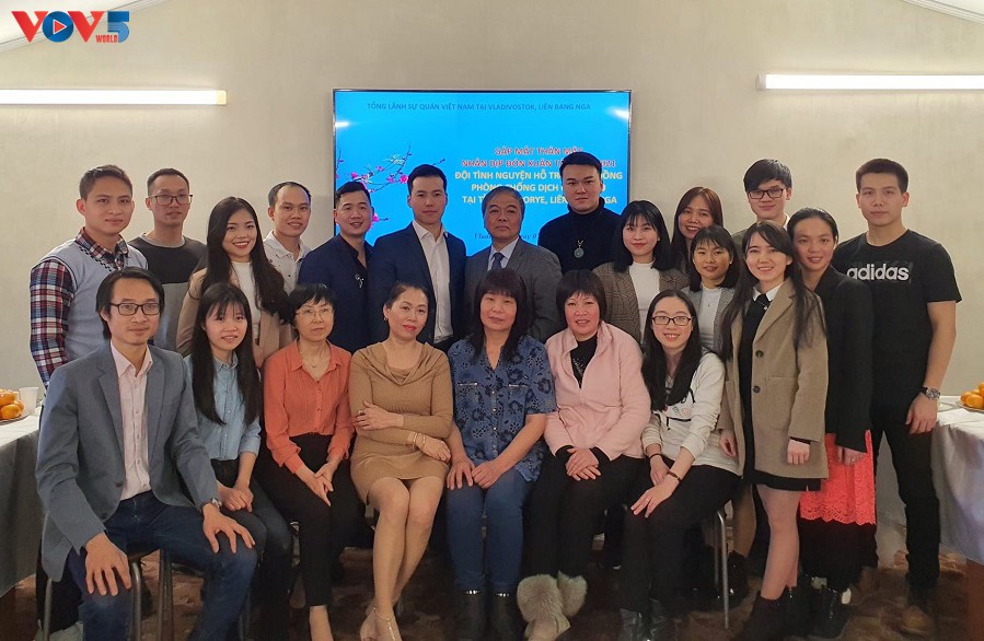 Ngày 7/2, Tổng Lãnh sự Việt Nam tại Vladivostok (Liên bang Nga) Nguyễn Hoàng Việt gặp mặt thân mật Đội tình nguyện hỗ trợ cộng đồng chống dịch COVID-19 tại tỉnh Primorye, tri ân những đóng góp của Đội tình nguyện trong gần một năm qua. Tham dự buổi gặp mặt có các cán bộ Tổng Lãnh sự quán Việt Nam tại Vladivostok, các thành viên trong Đội tình nguyện với nòng cốt là sinh viên thuộc hai trường đại học đóng trên địa bàn gồm Đại học Tổng hợp Liên bang Viễn Đông (DVFU) và Đại học Hàng hải Quốc gia mang tên Nhevenskoy.