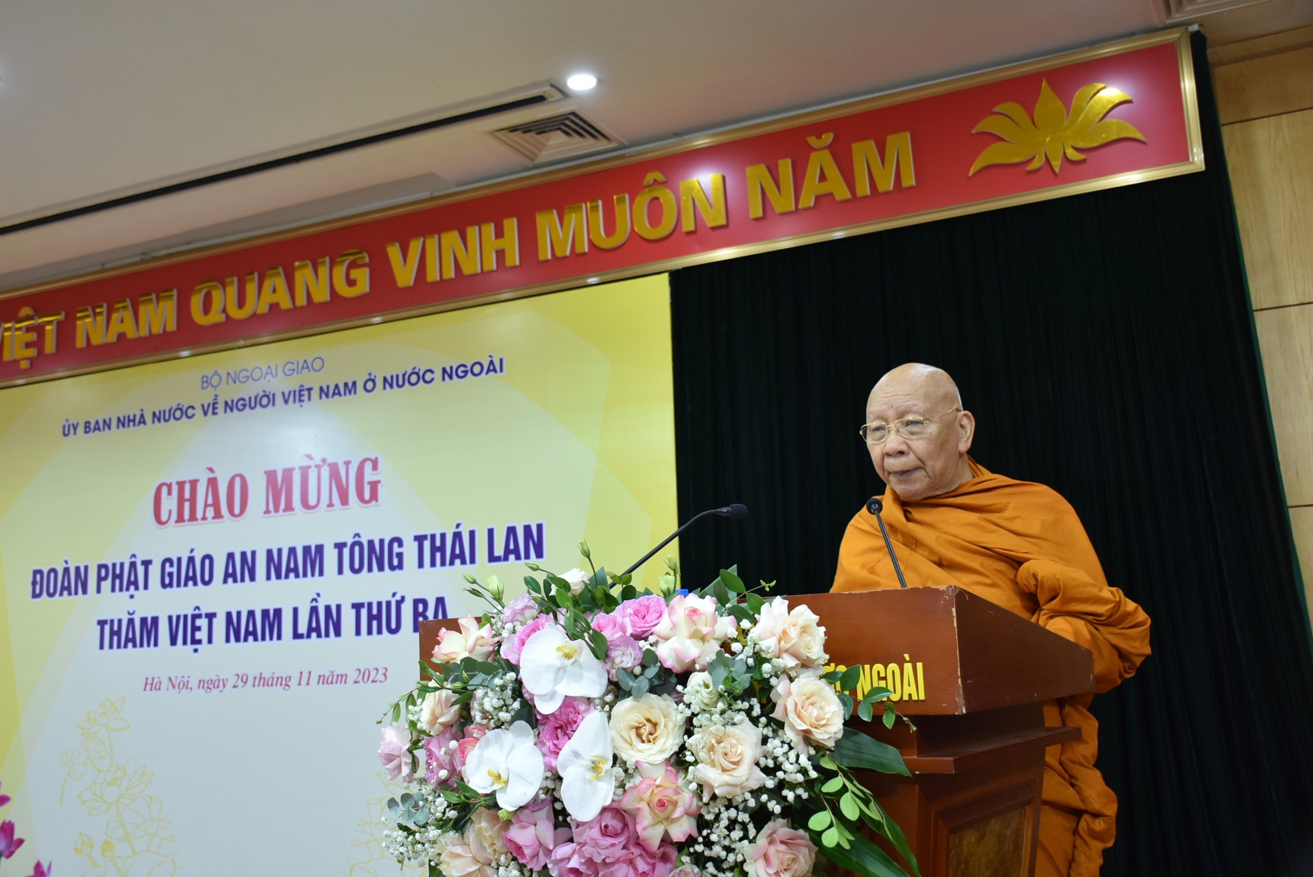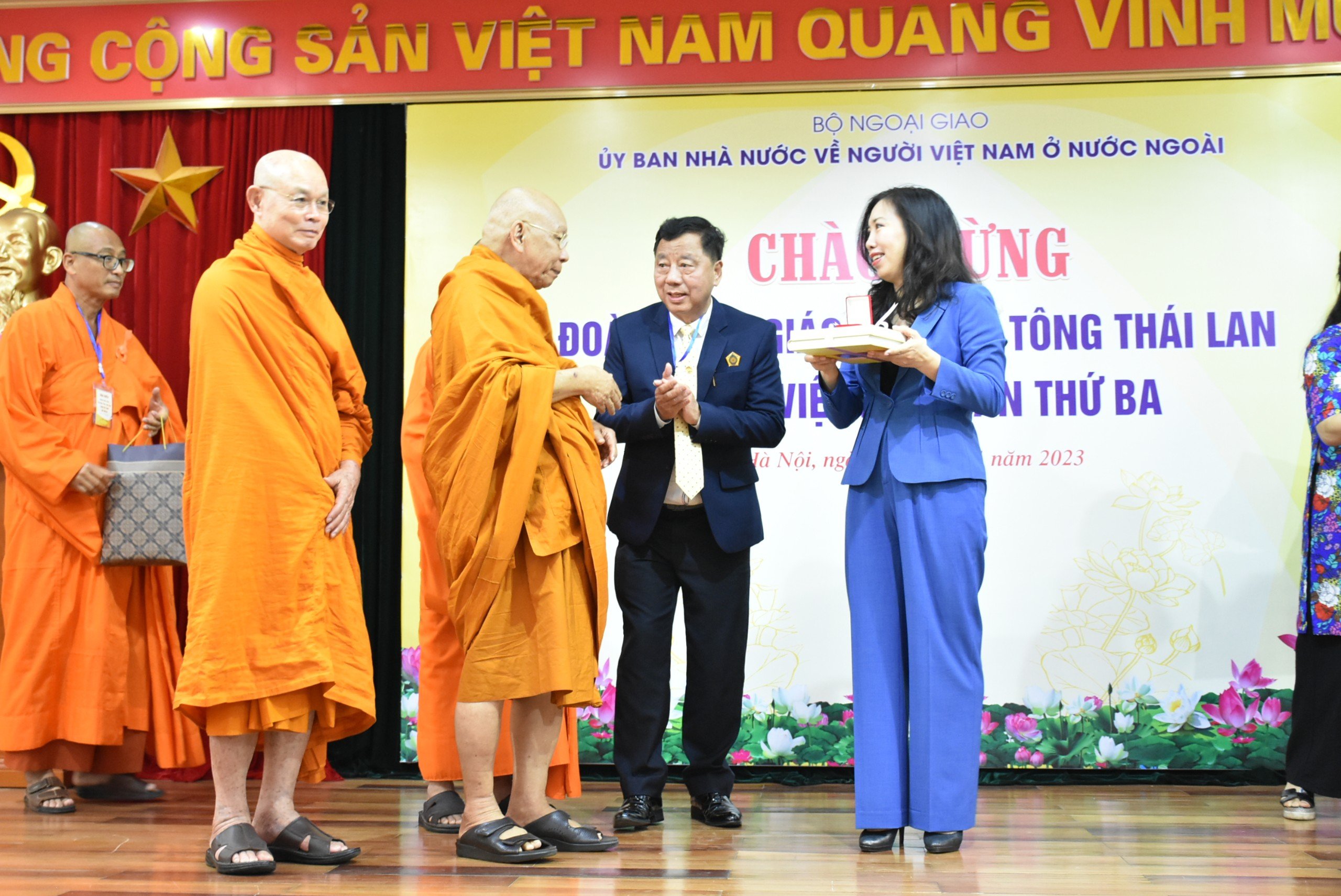 Tại buổi tiếp đoàn, Thứ trưởng Bộ Ngoại giao Lê Thị Thu Hằng, Chủ nhiệm Ủy ban Nhà nước về người Việt Nam ở nước ngoài, nhấn mạnh cho đến nay, quan hệ hợp tác hữu nghị giữa Việt Nam và Thái Lan tiếp tục phát triển tốt đẹp và sâu rộng trên các lĩnh vực. Quan hệ giao lưu nhân dân, văn hóa giữa hai bên tiếp tục được củng cố, trong đó giáo lý Đạo Phật là sợi dây tinh thần bền chặt, gắn bó một cách tự nhiên giữa hai dân tộc Việt Nam và Thái Lan.