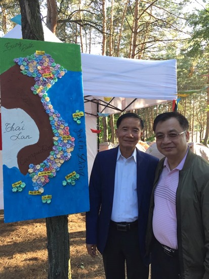 Trước khi tham dự khai mạc Trại hè, Đại sứ, cán bộ nhân viên Đại sứ quán cùng lãnh đạo các hội đoàn đã đi thăm các trại, biểu dương những ý tưởng sáng tạo, thiết kế trại ấn tượng về hình ảnh đất nước, con người Việt Nam.