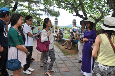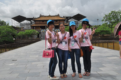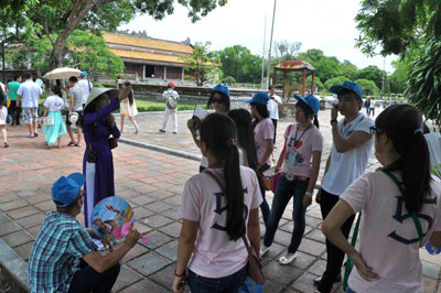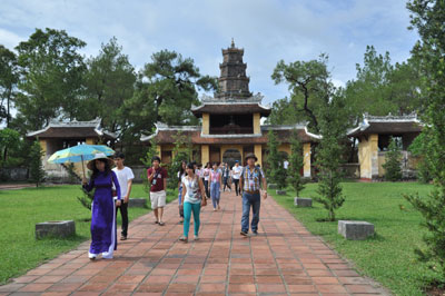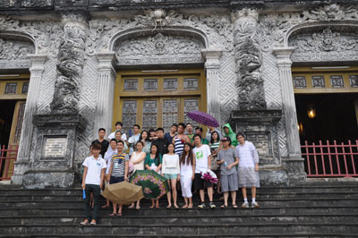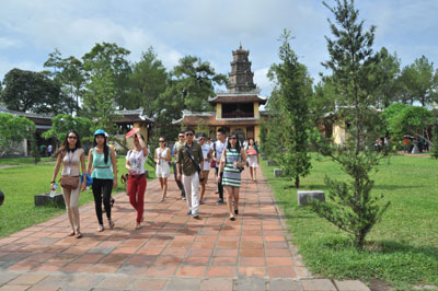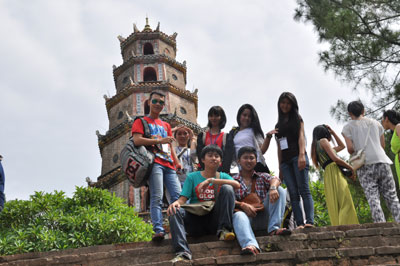 (VOV5)- Tiếp tục hành trình “Mười năm tiếng gọi cội nguồn”, ngày 20/7, Đoàn đại biểu Trại hè Việt Nam 2013 đến thành phố Huế. Gần 200 sinh viên Việt kiều đang sinh sống, học tập ở khắp nơi trên thế giới đến tham quan di tích Lăng Khải Định, Chùa Thiên Mụ - ngôi chùa cổ nhất ở Huế và khám phá Đại Nội - Hoàng cung của 13 triều vua Nguyễn.