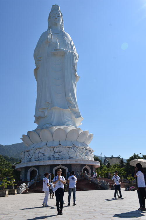 Một điều đặc biệt nữa của chùa Linh Ứng là cho dù đứng ở bất kỳ nơi nào trong thành phố cũng đều dễ dàng nhìn thấy tượng Phật Bà Quan Thế Âm đứng tựa lưng vào núi, mặt hướng ra biển với đôi mắt hiền từ, một tay bắt ấn tam muội, tay kia cầm bình nước cam lộ.