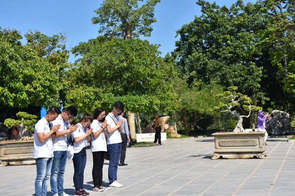 Trước Phật Bà Quan Thế Âm, các bạn trẻ kiều bào thành tâm cầu nguyện an lành đến với bản thân, gia đình và bạn bè.