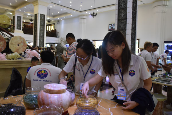 Đoàn Đại biểu Trại hè Việt Nam cũng được đi tham quan Làng đá Non Nước. Các bạn trẻ ngạc nhiên về làng nghề này bởi hàng trăm sản phẩm được bày trí cho du khách tham quan và mua về làm quà lưu niệm, với đa đạng sản phẩm rất đẹp như: những pho tượng Phật, tượng Thánh, tượng người, muông thú cho đến những sản phẩm đồ lưu niệm... được chạm trổ hoa văn rất đẹp.