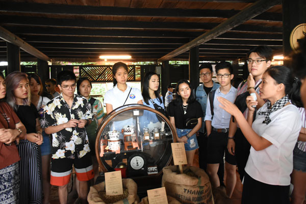Các bạn trẻ nghe giới thiệu về câu chuyện lịch sử cà phê thế giới và lịch sử quá trìnn du nhập của cây cà phê vào Việt Nam |