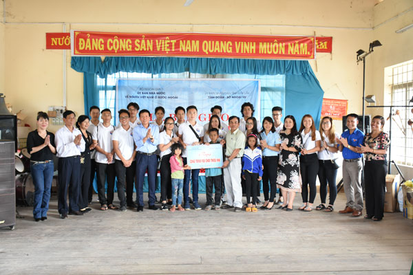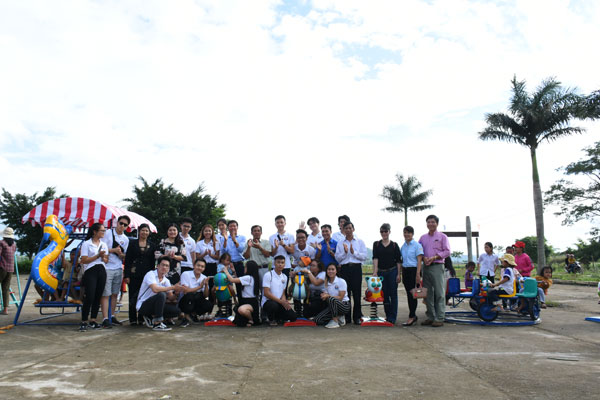 Các bạn trẻ về từ CH Séc trao tặng món quà là những vật dụng trò chơi dành cho các em thiếu nhi |