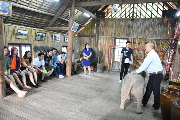 Đặc biệt trong sáng ngày 23/7, các bạn trẻ đã đến Buôn Đôn, tham quan, tìm hiểu về tục săn voi của đồng bào Ê đê, M’Nông trước đây, trải nghiệm trên lưng những chú voi được người dân trong bản thuần dưỡng.