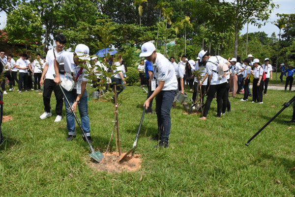 Tiếp đó các bạn trẻ thanh niên, sinh viên kiều bào đã tham giat hoạt động trồng cây tại Khu di tích Kim Liên nhằm bảo vệ môi trường trước sự biến đổi khí hậu ngày càng nóng lên trên toàn cầu.