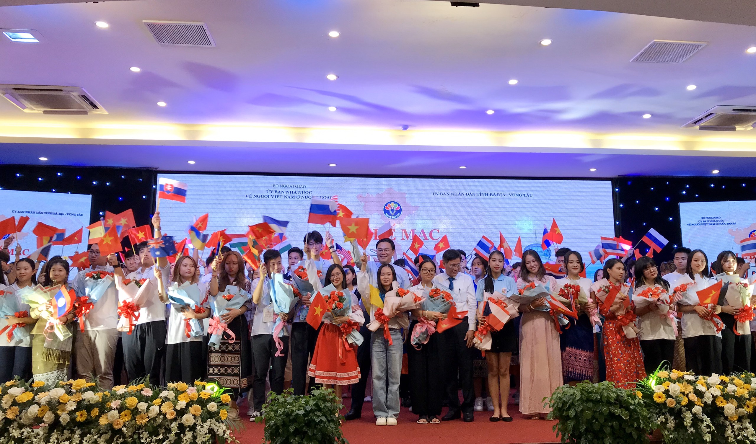 Lãnh đạo Uỷ ban Nhà nước về người Việt Nam ở nước ngoài, Bộ Ngoại giao, lãnh đạo UBND tỉnh Bà Rịa - Vũng Tàu chụp ảnh cùng các đại biểu Trại hè Việt Nam 2022. |