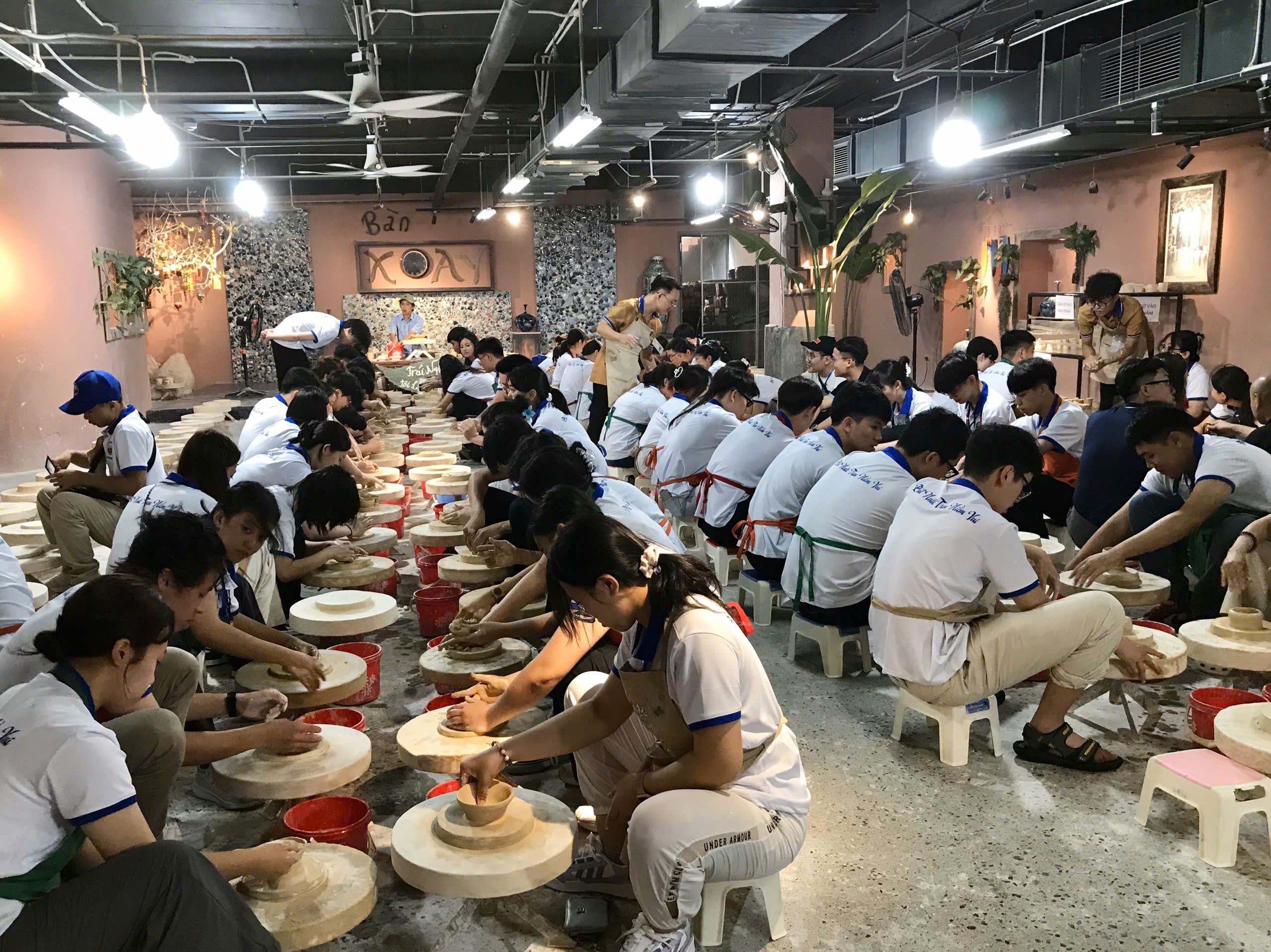 Tiếp đó, đoàn di chuyển đến Bảo tàng gốm Bát Tràng. Tại đây, các bạn được tìm hiểu về lịch sử hơn 500 năm của làng gốm và chiêm ngưỡng những tác phẩm tinh xảo. Đặc biệt, tại tầng hầm của bảo tàng, các đại biểu đã có cơ hội trực tiếp trải nghiệm làm gốm dưới sự hướng dẫn của các nghệ nhân làng nghề. Nhiều em lần đầu tiên được tự tay tạo ra sản phẩm gốm của riêng mình.