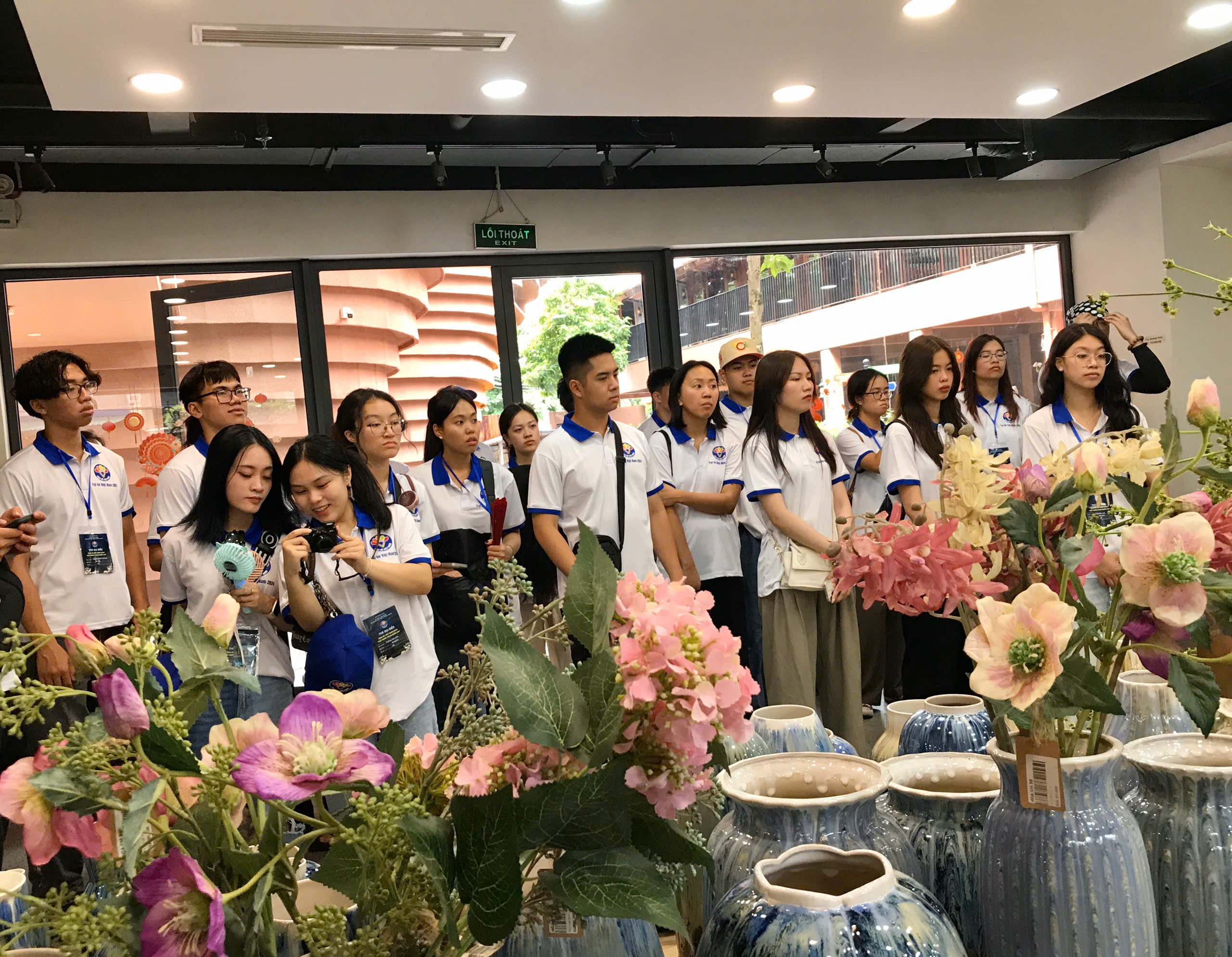 Đoàn Trại hè Việt Nam 2024 thăm khu trưng bày tại Bảo tàng gốm Bát Tràng. |
