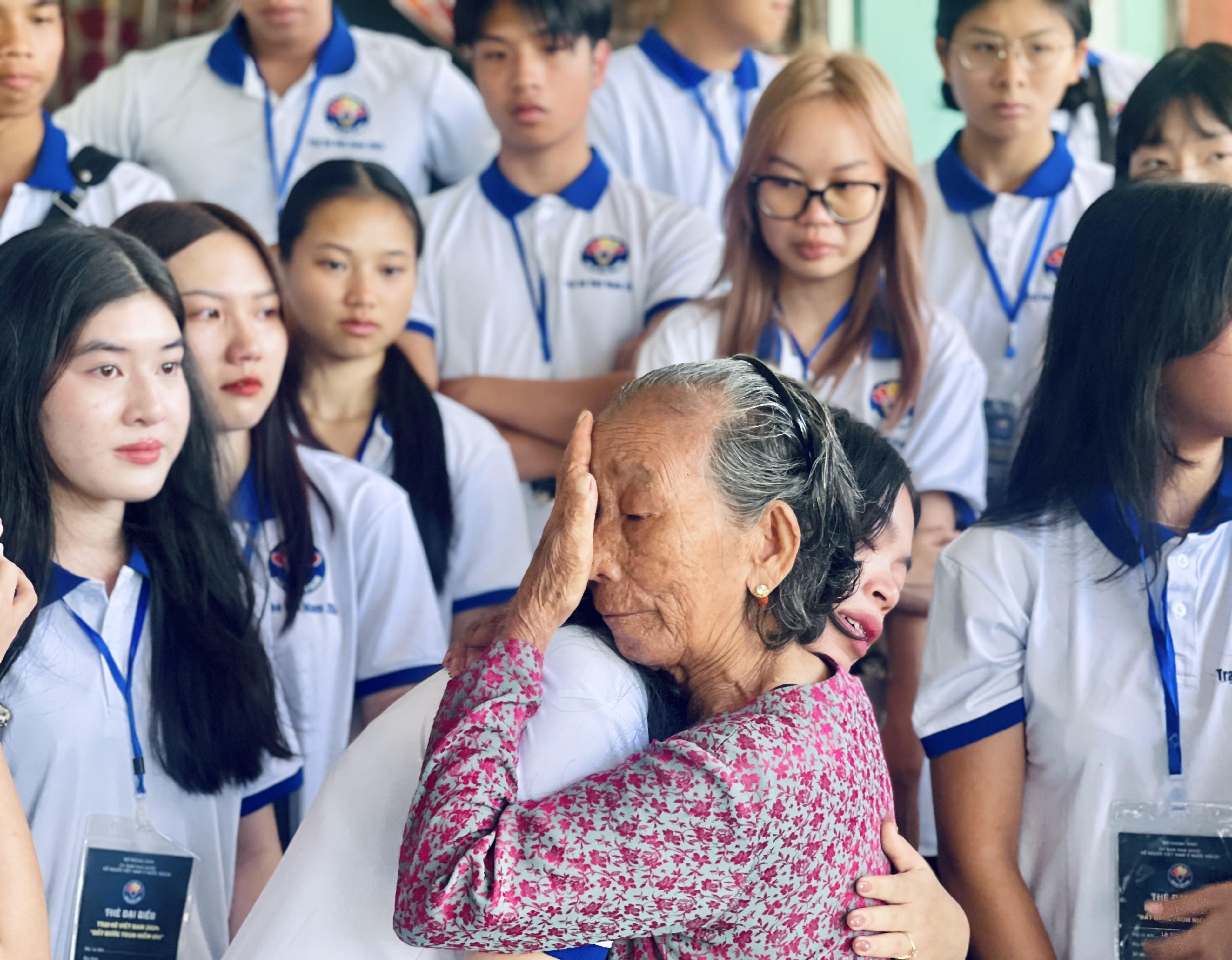 Ngôi nhà nhỏ của mẹ Nguyễn Thị Nậy tại xã Gio Mỹ, huyện Gio Linh, tỉnh Quảng Trị hôm nay đón một đoàn khách đặc biệt. Đó là những thanh thiếu niên gốc Việt từ nhiều quốc gia trên thế giới trở về Việt Nam trong hành trình của Trại hè 2024. Người mẹ Việt Nam anh hùng năm nay đã gần trăm tuổi, đôi mắt không còn trông thấy nữa, nhưng những giọt nước mắt xúc động vẫn lăn dài trên má khi các bạn trẻ hỏi thăm.