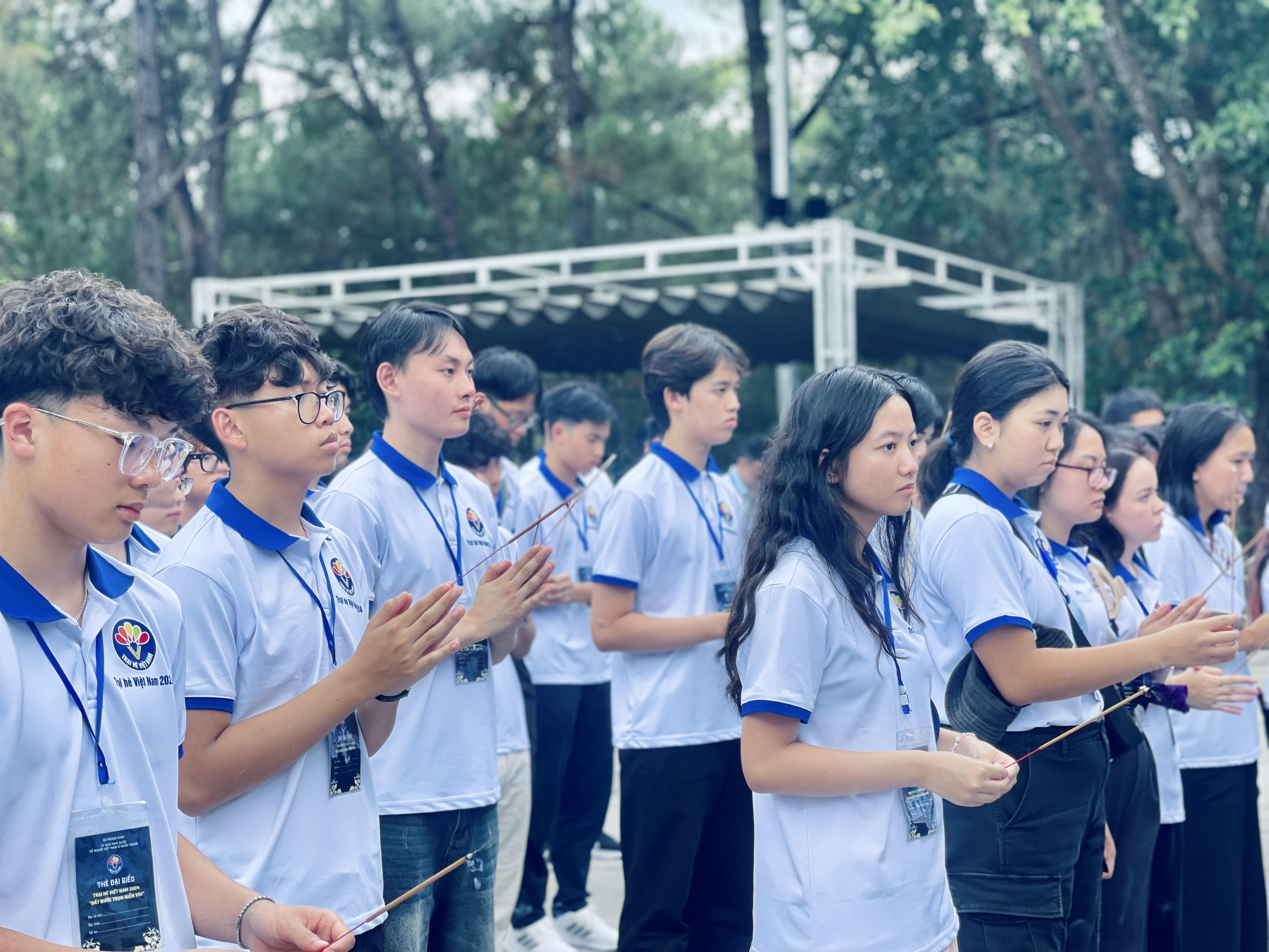 Trong hành trình tri ân trên mảnh đất Quảng Trị, đoàn Trại hè đã đến thắp hương tưởng niệm các liệt sỹ tại Nghĩa trang Trường Sơn. Với nhiều bạn trẻ trong đoàn, đây là lần đầu tiên các em được tự mình thắp nén hương dâng lên các anh hùng của dân tộc.