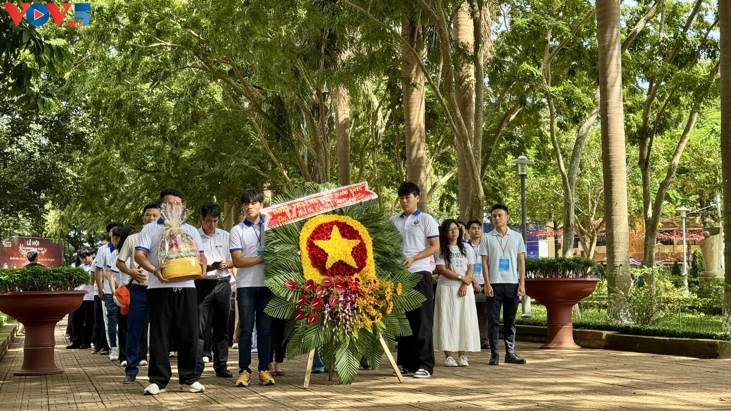 Thanh thiếu niên trại hè dâng hoa, dâng hương tại Đài tưởng niệm 100 chiến sĩ Nam tiến (tại Buôn Ma Thuột, Đắk Lắk) đã anh dũng hy sinh trong thời kỳ đầu kháng chiến chống Pháp. |