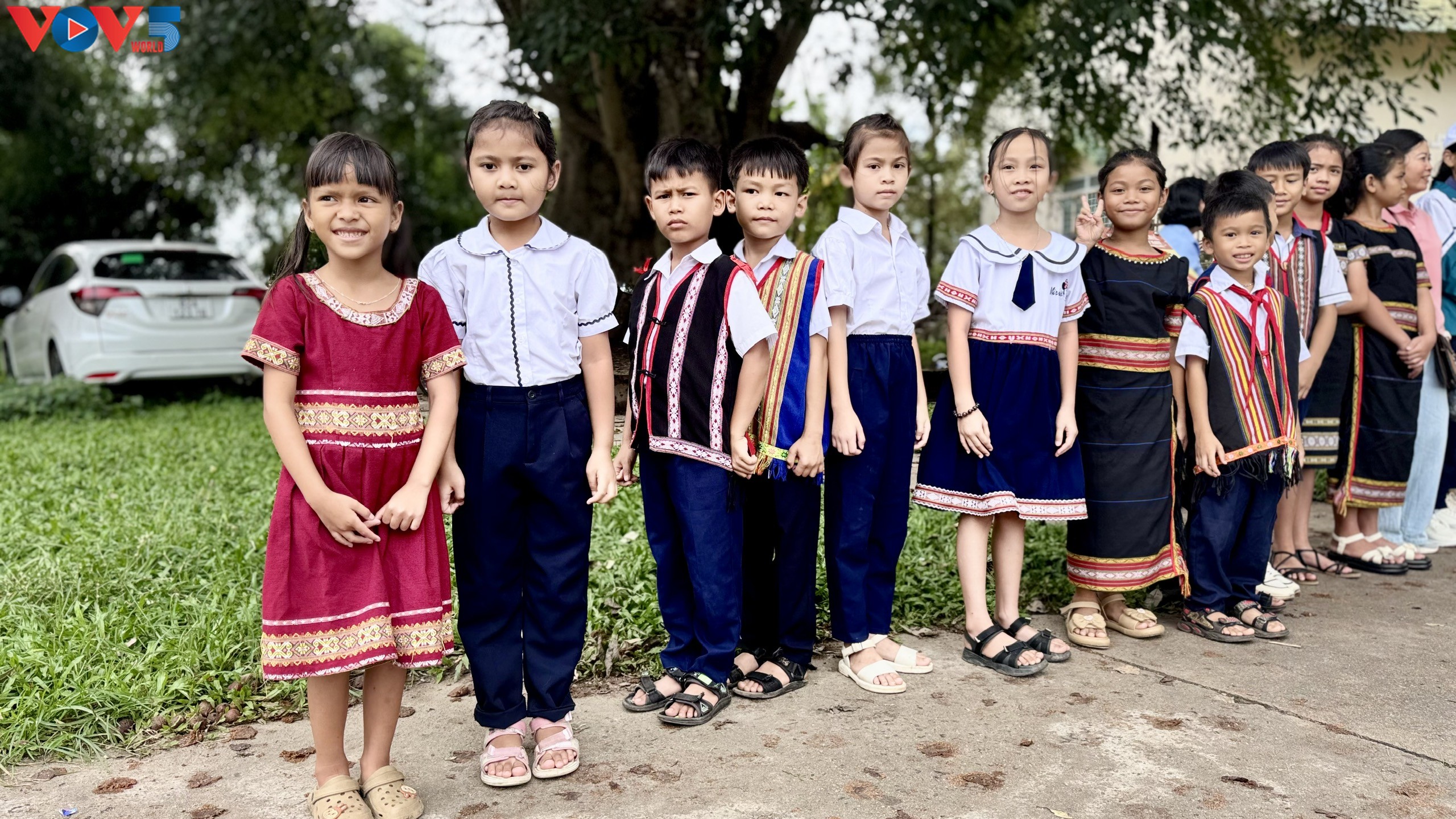 Các em nhỏ địa phương người dân tộc vui mừng đón đoàn tới thăm. |