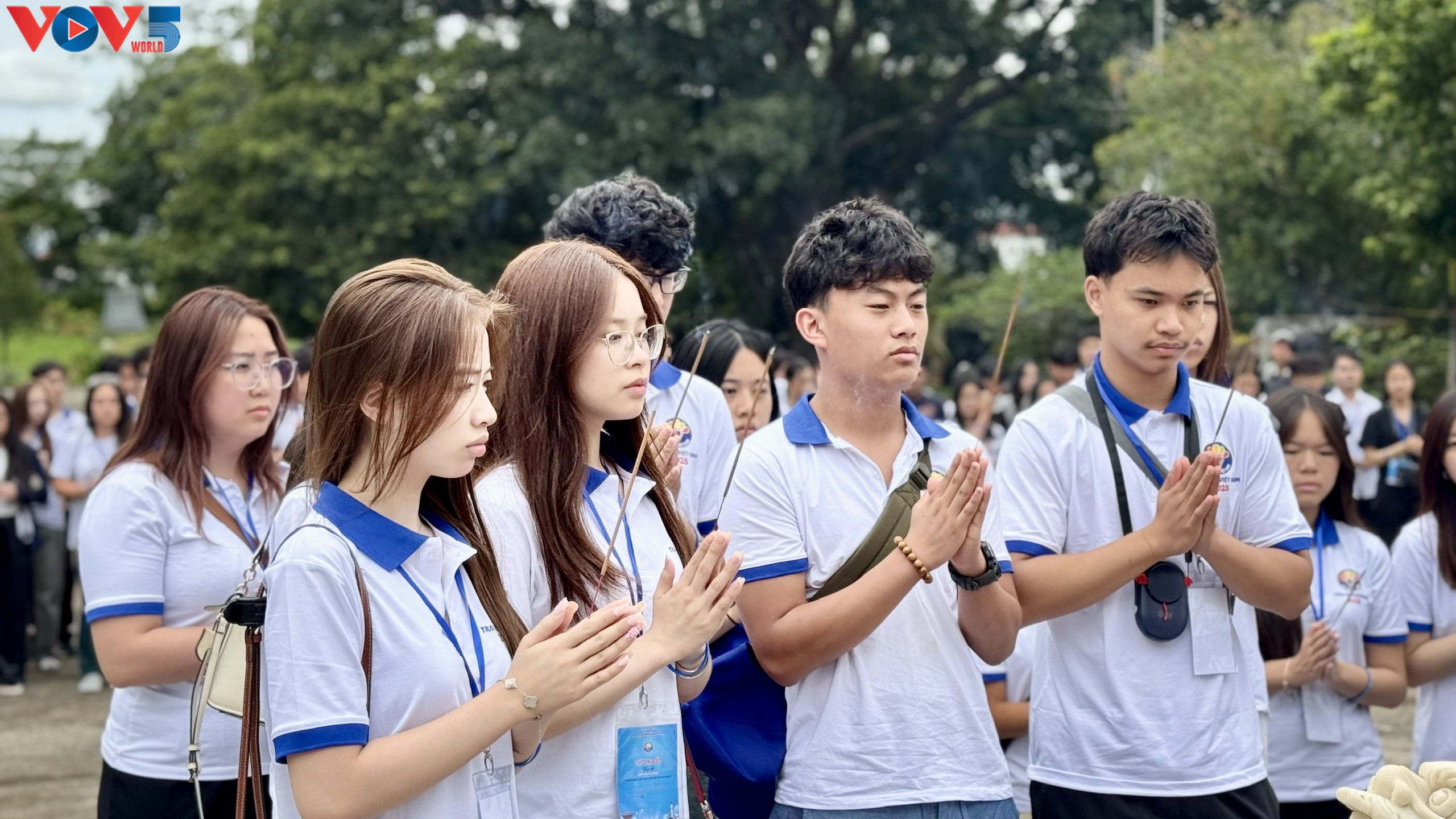 Thanh thiếu niên kiều bào dành phút mặc niệm, tưởng nhớ anh linh của những chiến sĩ đã ngã xuống tại Ngục Kon Tum. |