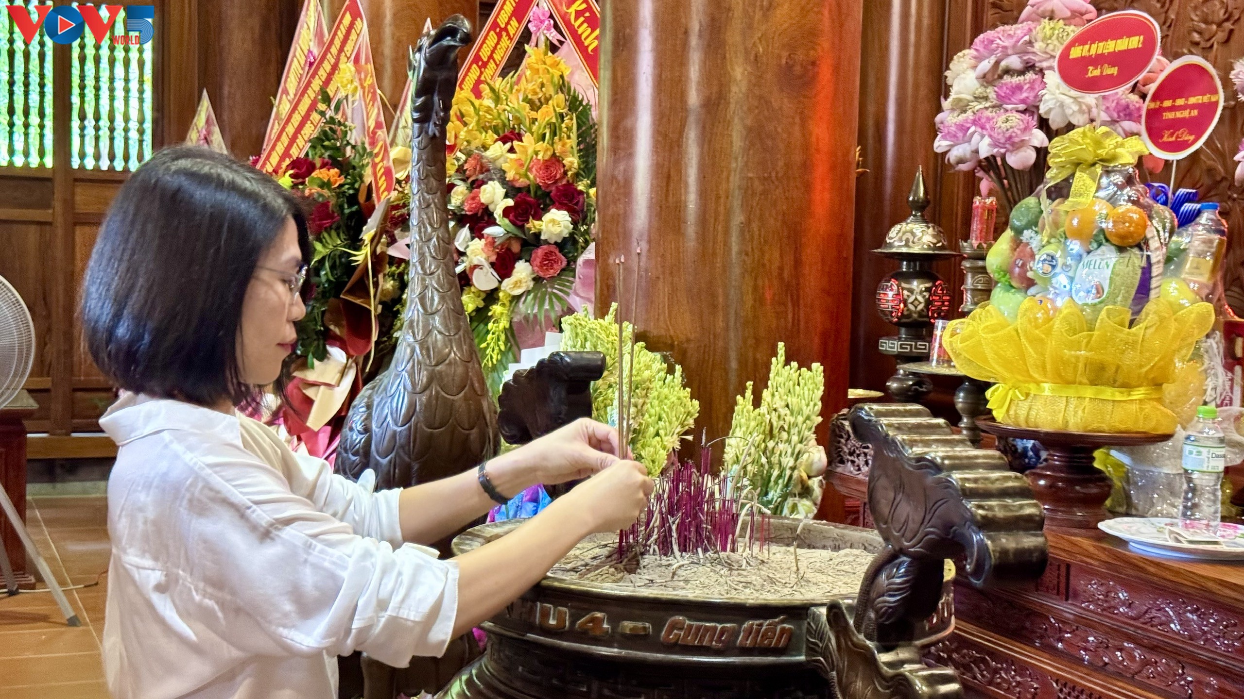 Chiều cùng ngày, bà Ngô Thị Thanh Mai - Phó Chủ nhiệm Uỷ ban Nhà nước về người Việt Nam ở nước ngoài dẫn đầu đoàn về Nghệ An thăm quê nội và quê ngoại của Chủ tịch Hồ Chí Minh tại xã Kim Liên. |