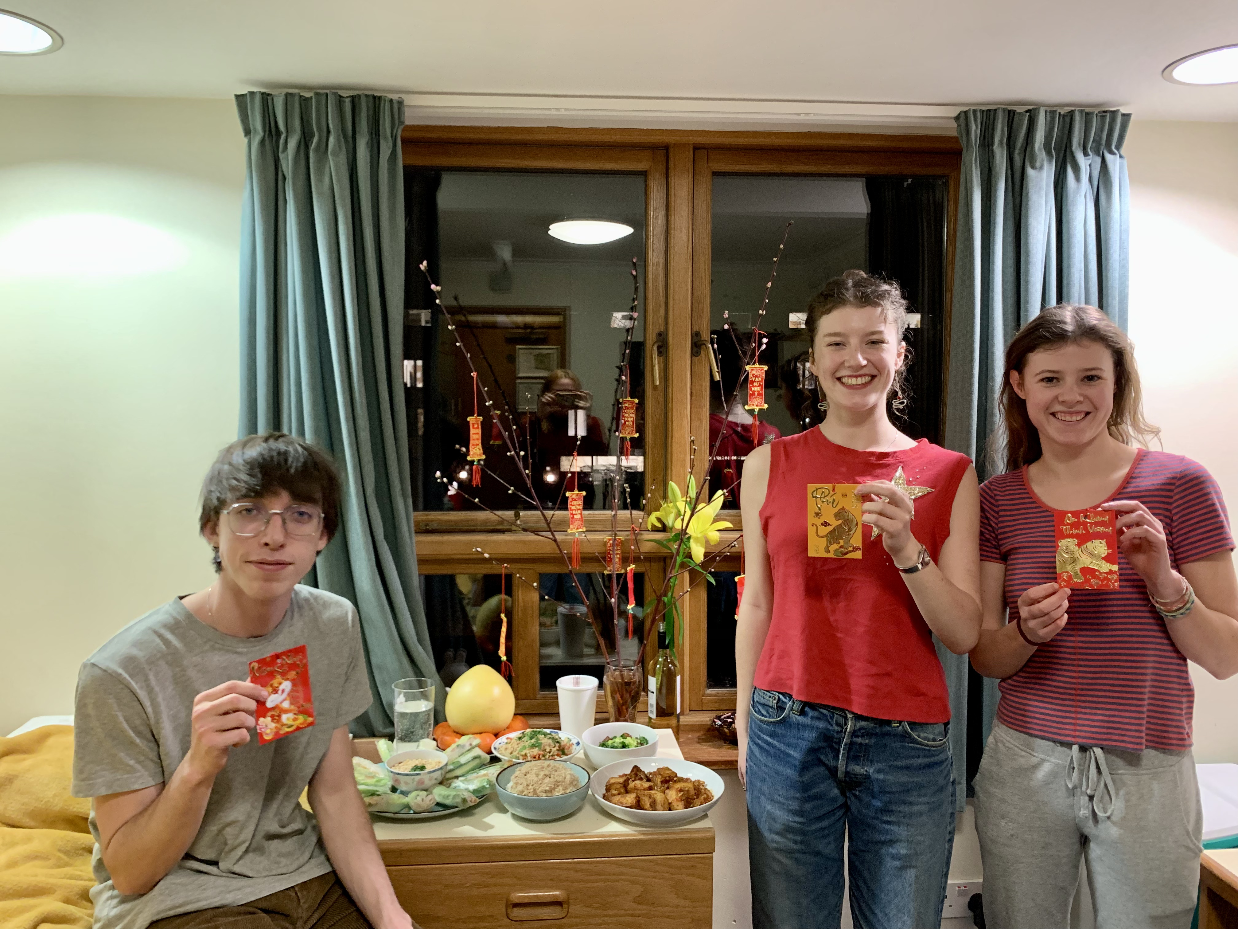 Những người bạn tại đại học Oxford chào đón năm mới 2022 đậm chất Việt Nam cùng Viki. Ảnh: NVCC. |