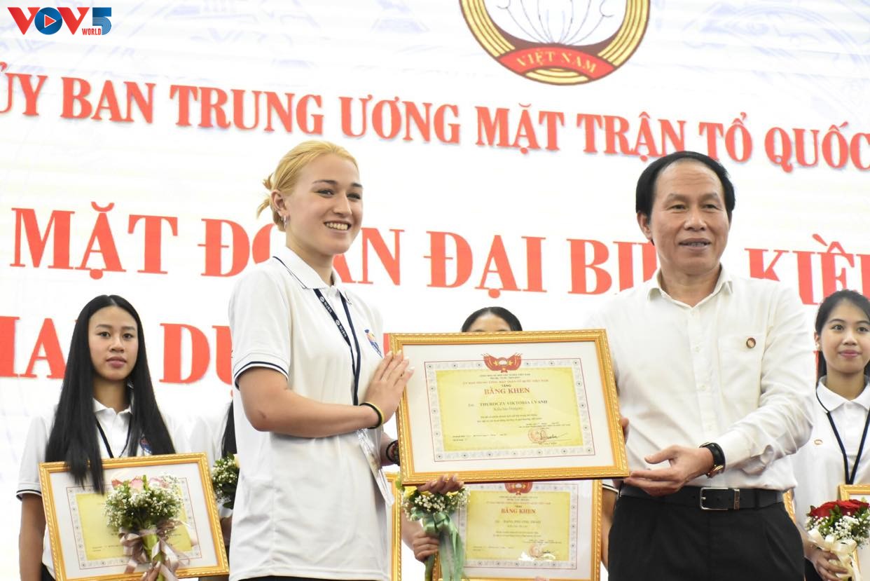 Viki là một trong 8 thanh thiếu niên kiều bào trẻ tiêu biểu được Ủy ban Trung ương Mặt trận Tổ quốc Việt Nam vinh danh tại Trại hè Việt Nam 2022 ngày 20/07/2022. - Ảnh: Thảo Nguyên |