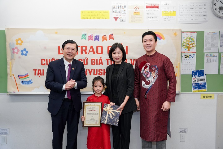 Cuối tuần qua, tại Học viện Nhật ngữ GAG, thành phố Fukuoka, Nhật Bản, Tổng Lãnh sự quán Việt Nam tại Fukuoka phối hợp với Hội người Việt Nam tại Fukuoka tổ chức trao giải cuộc thi “Sứ giả tiếng Việt ở nước ngoài năm 2024” tại Nhật Bản.