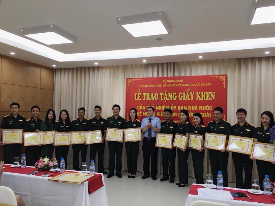 27 đơn vị, cá nhân là các cán bộ, chiến sĩ thuộc các đoàn nghệ thuật: Nhà hát ca múa nhạc quân đội; Nhà hát tuổi trẻ và Đoàn nghệ thuật tỉnh Điện Biên được nhận giấy khen của Chủ nhiệm Ủy ban Nhà nước về Người Việt Nam ở nước ngoài đợt này. Các đơn vị và nghệ sĩ đã tham gia cùng đoàn kiều bào thăm quân và dân huyện đảo Trường Sa năm 2015 cũng như đi biểu diễn phục vụ bà con người Việt ở Thái Lan và Lào nhân dịp Tết Cổ truyền dân tộc năm nay.