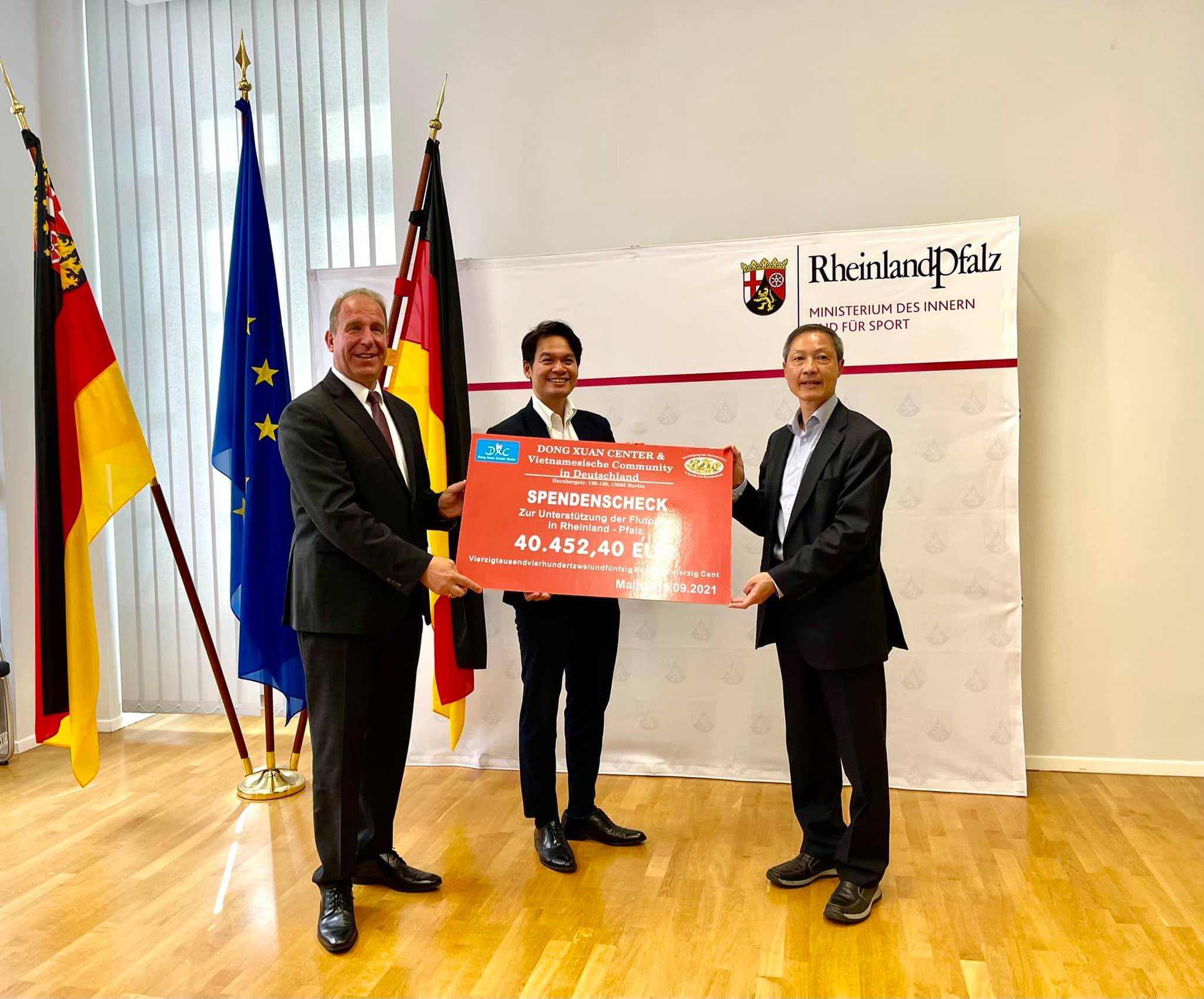 Tại lễ tiếp nhận, ông Randolf Stich, Thứ trưởng thường trực Bộ Nội vụ và Thể thao bang Rheinland Pfalz, bày tỏ sự xúc động khi nhận được tiền ủng hộ của cộng đồng người Việt. Đây là tấm lòng sẻ chia, sự đồng cảm quý báu, là món quà thiết thực đối với chính quyền và người dân vừa bị thiệt hại vì lũ lụt. Cùng với những ủng hộ của người dân cả nước, số tiền này là sự động viên để chính quyền và người dân ở đây sớm khắc phục hậu quả trận lũ, bình ổn cuộc sống.