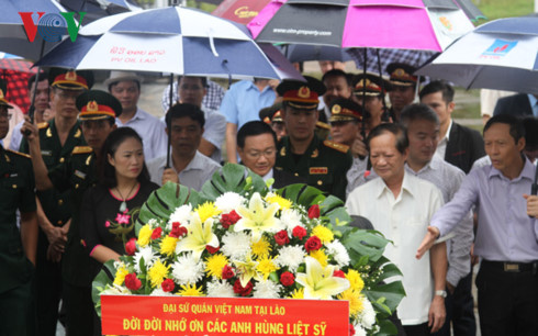 Trong không khí trang nghiêm, thiêng liêng và xúc động, khi đứng trước anh linh các anh hùng liệt sỹ Liên quân Lào - Việt, Đại sứ Nguyễn Bá Hùng, cùng toàn thể bà con người Việt Nam và Lào tham dự, kính cẩn, nghiêng mình trước anh linh các anh hùng liệt sỹ, những người con yêu dấu của Việt Nam – Lào, đã anh dũng hy sinh để cho non sông, đất nước của mình được ấm no, hạnh phúc.