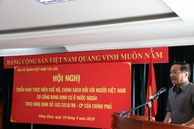 Ngày 19/4, tại thủ đô Vientiane, Cục Chính sách, Tổng cục Chính trị Quân đội nhân dân Việt Nam phối hợp với Đại sứ quán Việt Nam tại Lào tổ chức Hội nghị triển khai thực hiện chế độ, chính sách đối với người Việt Nam có công đang định cư ở nước ngoài theo Nghị định của Chính phủ.