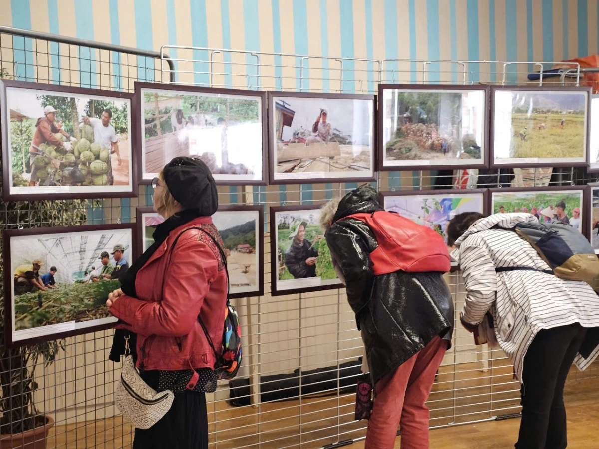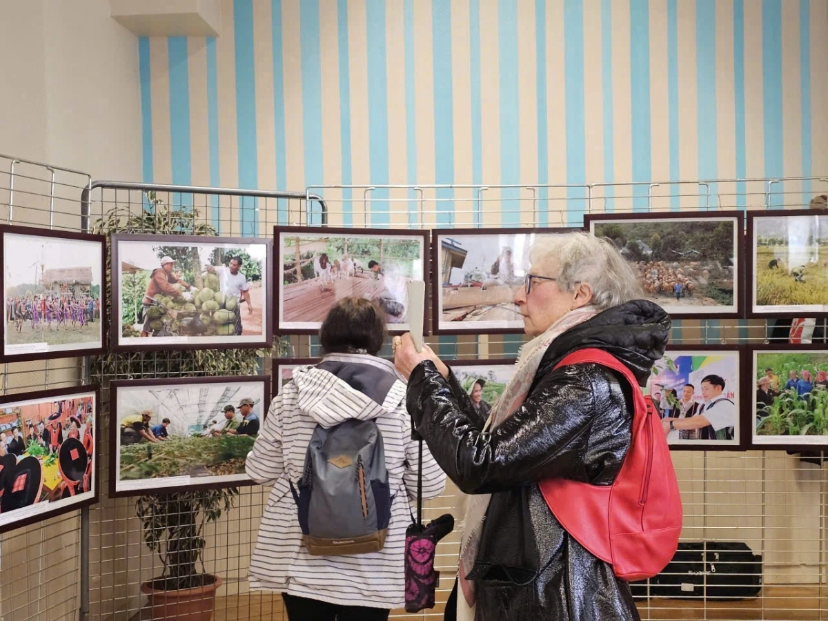 Tại một không gian trang trọng của Tòa thị chính thành phố Tòa thị chính thành phố Voves (tỉnh Eure-et-Loir, Pháp), hàng chục bức ảnh về các mô hình phát triển kinh tế mới và cuộc sống thường nhật của đồng bào các dân tộc thiểu số (làm bánh, chăn nuôi, thu hoạch, du lịch cộng đồng, sản xuất kinh doanh…) đã được giới thiệu tới bạn bè Pháp.