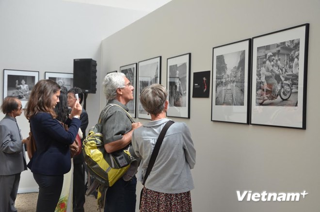 | Công chúng Pháp khám phá bản sắc văn hóa các dân tộc Việt Nam qua các bức ảnh trưng bày tại triển lãm.(Ảnh: Vietnam+) |