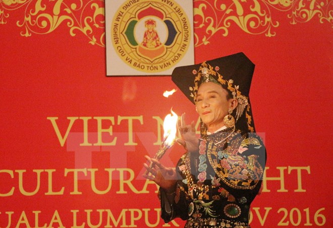 | Tối 17/11, tại thủ đô Kuala Lumpur (Malaysia), buổi trình diễn thực hành tín ngưỡng thờ Mẫu của người Việt đã diễn ra trước đông đảo khán giả quốc tế và cộng đồng cư dân địa phương. Ảnh: TTXVN |
