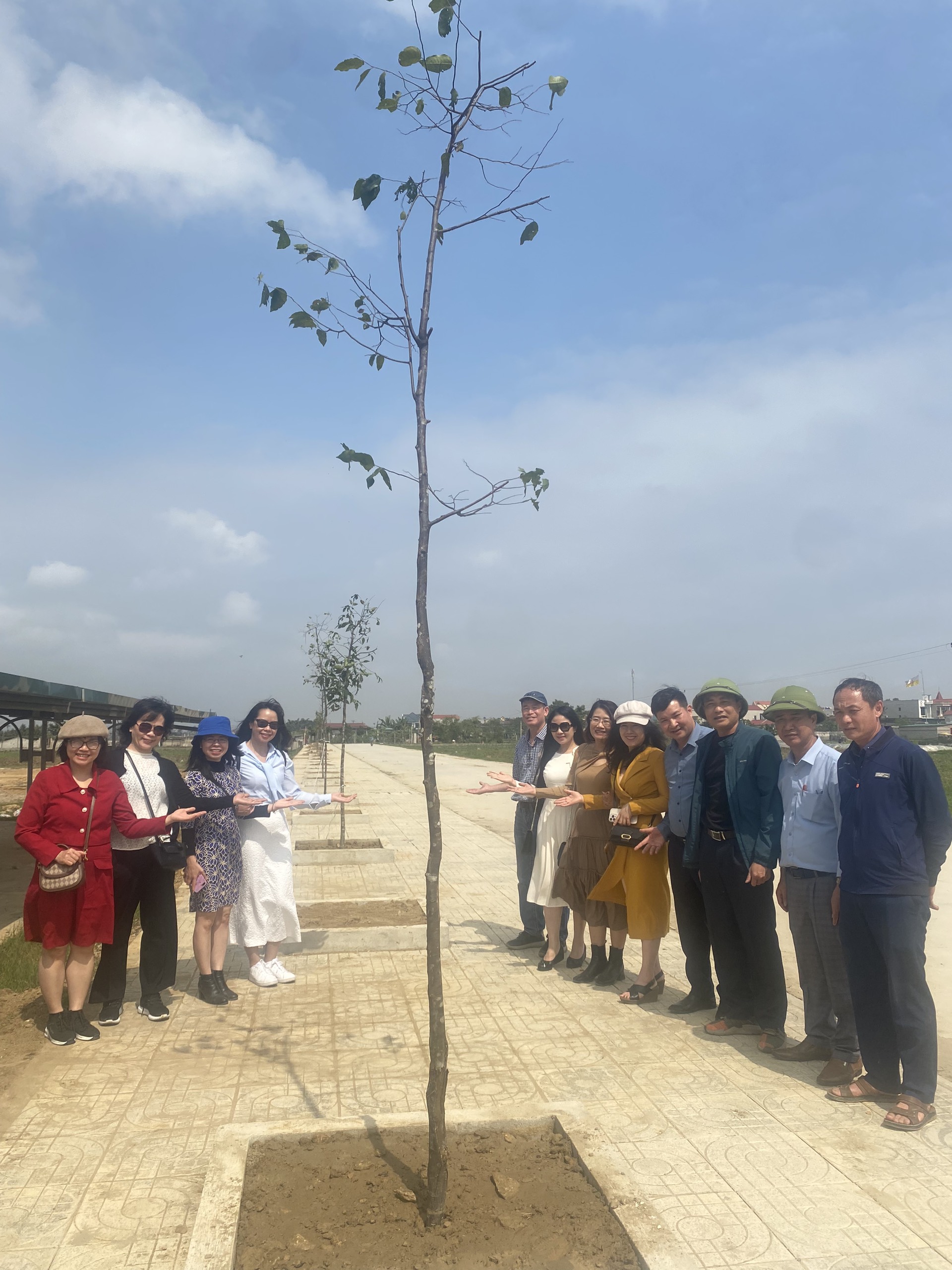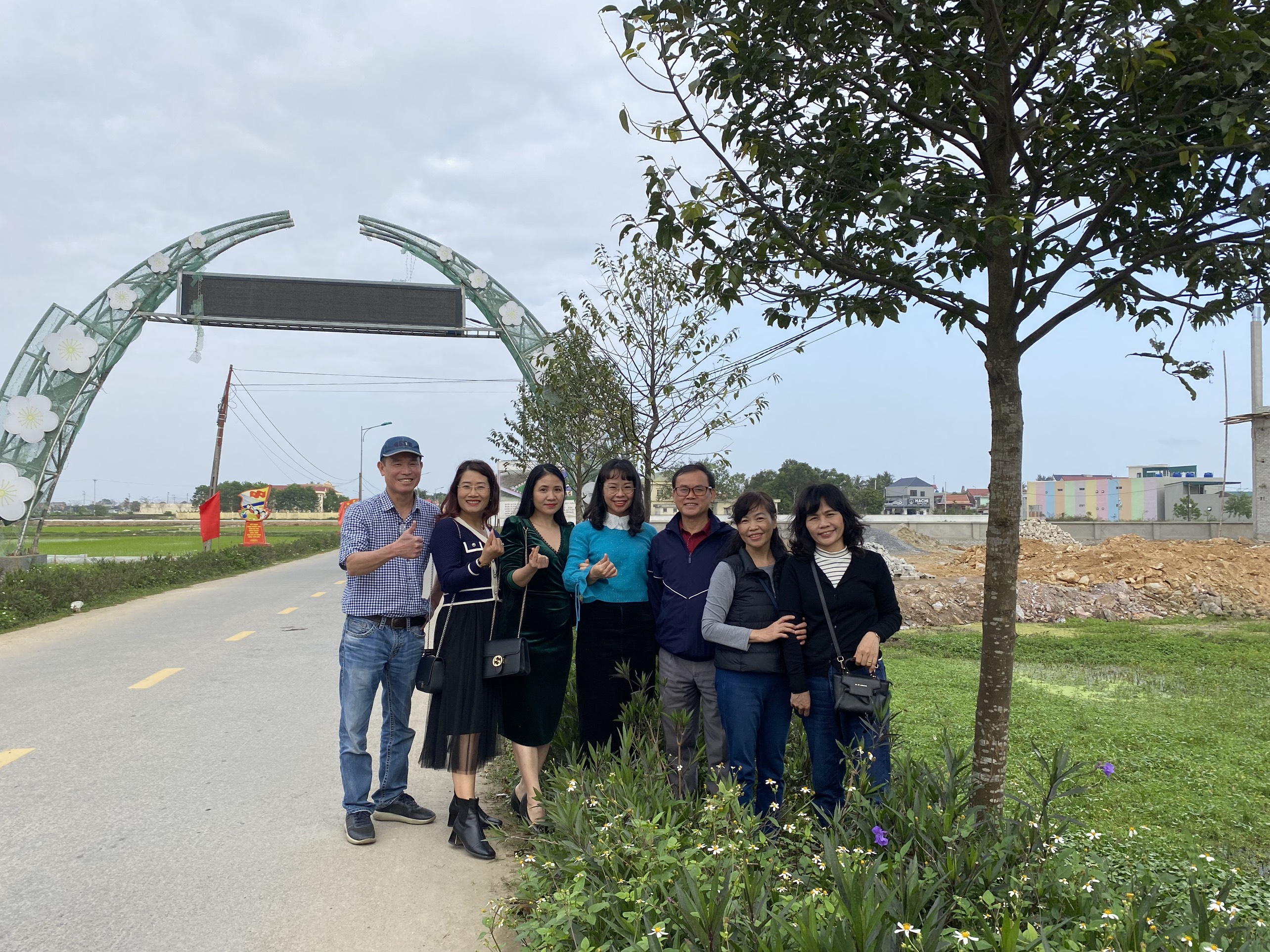 Bà Đoàn Thanh Vân (thứ hai từ phải sang) chụp ảnh tại một đường cây của xã Hoa Lộc. |