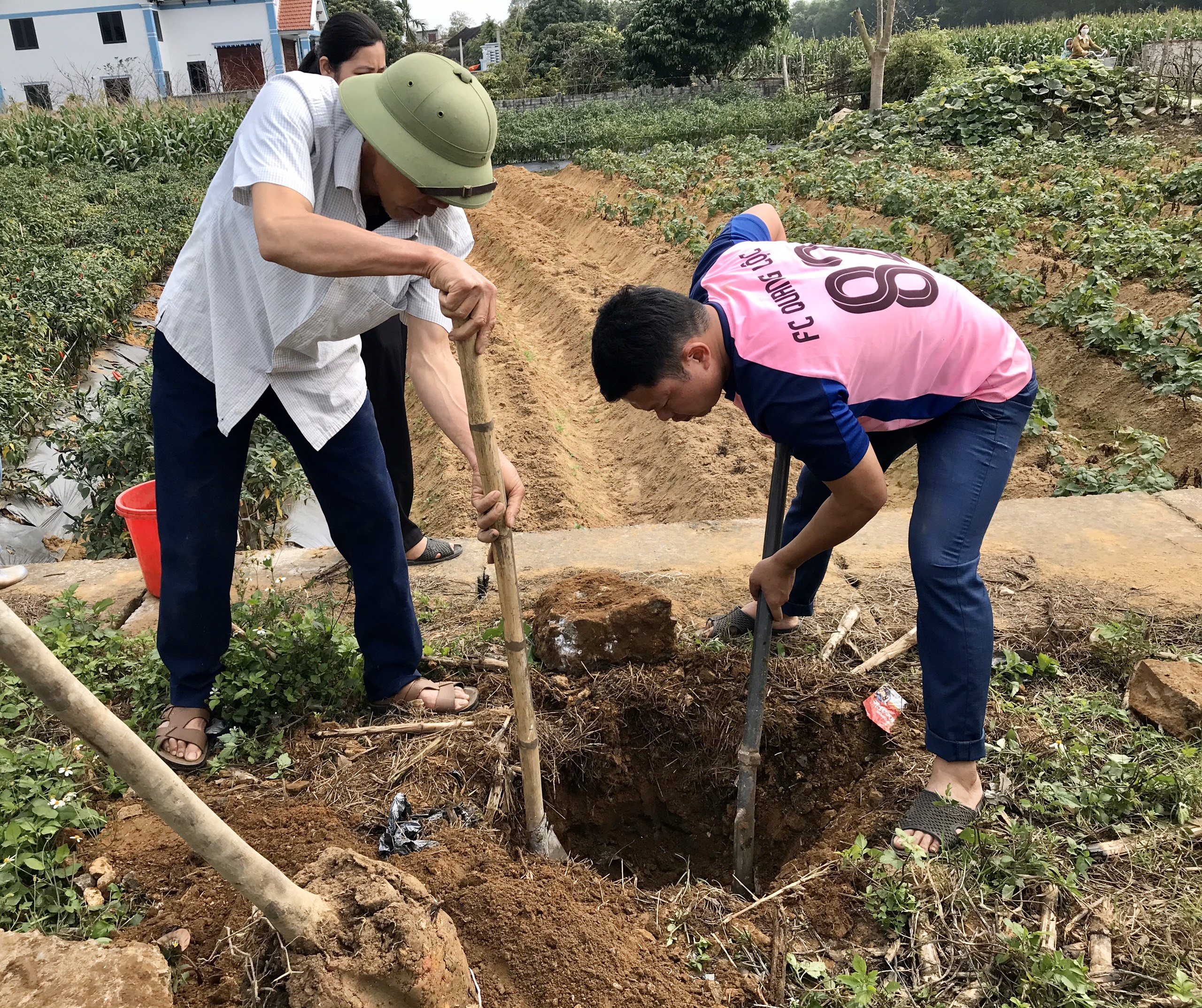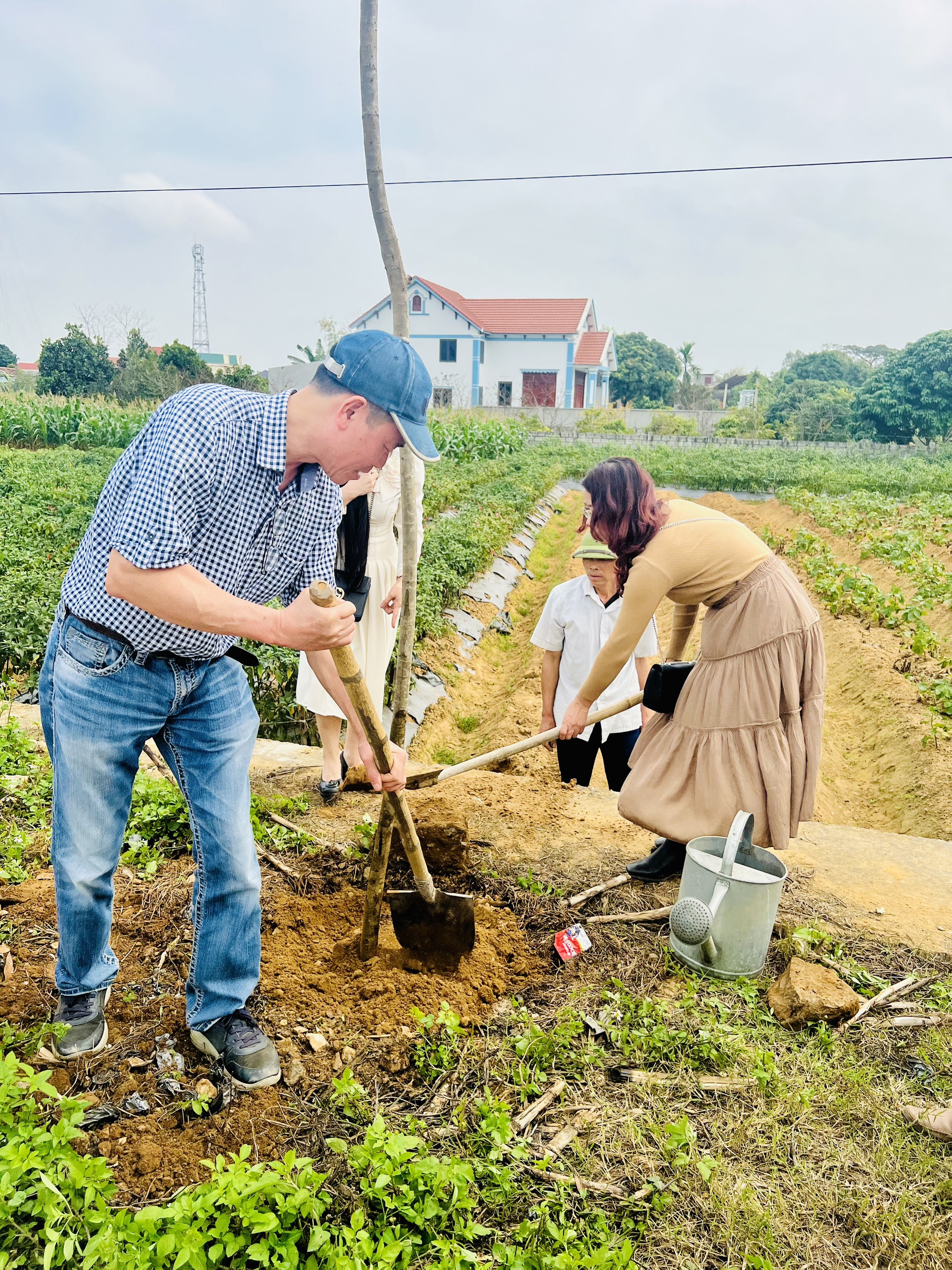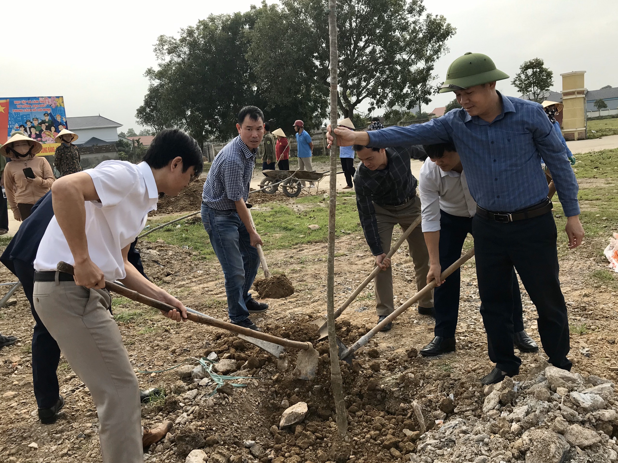 Người dân hào hứng tham gia đào hố trồng cây. |