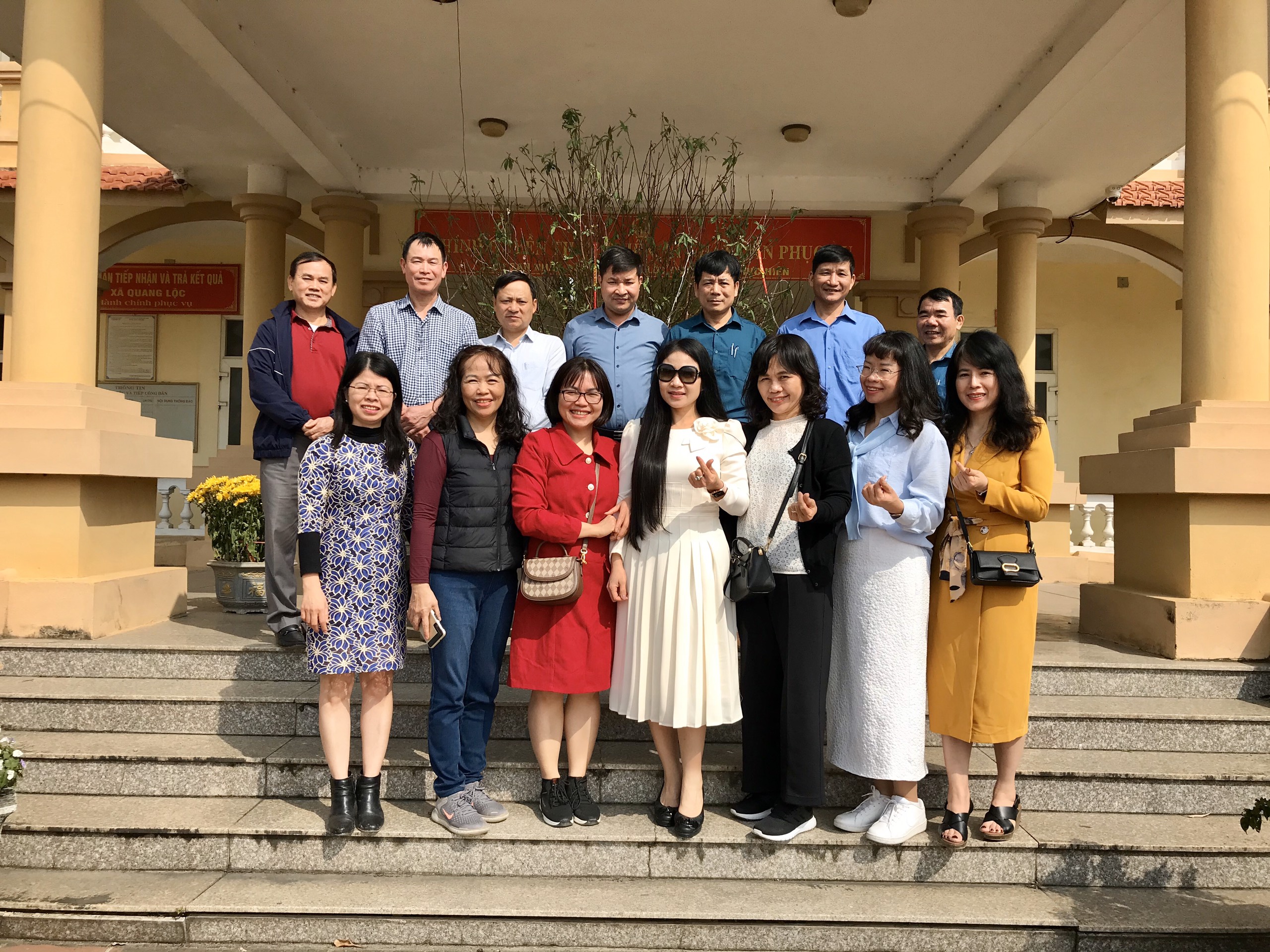 Lãnh đạo xã Quang Lộc chụp ảnh cùng ông Phạm Hùng Mạnh và đoàn công tác. |