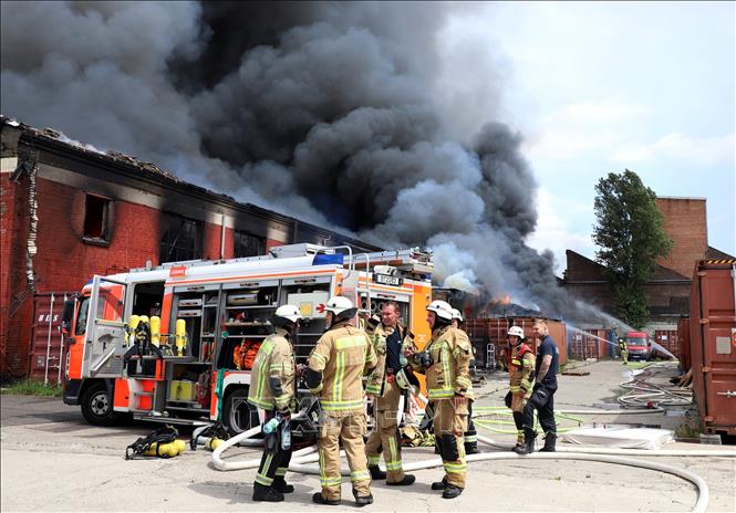 Lực lượng cứu hỏa nỗ lực khống chế đám cháy Trung tâm thương mại Đồng Xuân ở Berlin ngày 4/7 - Ảnh: TTXVN |
