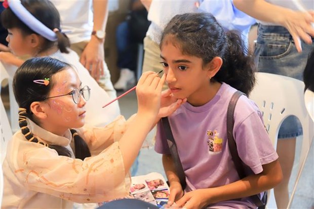 Vẽ mặt thu hút sự tham gia của các cháu thiếu nhi có năng khiếu hội họa. (Ảnh: Lê Dương/TTXVN)