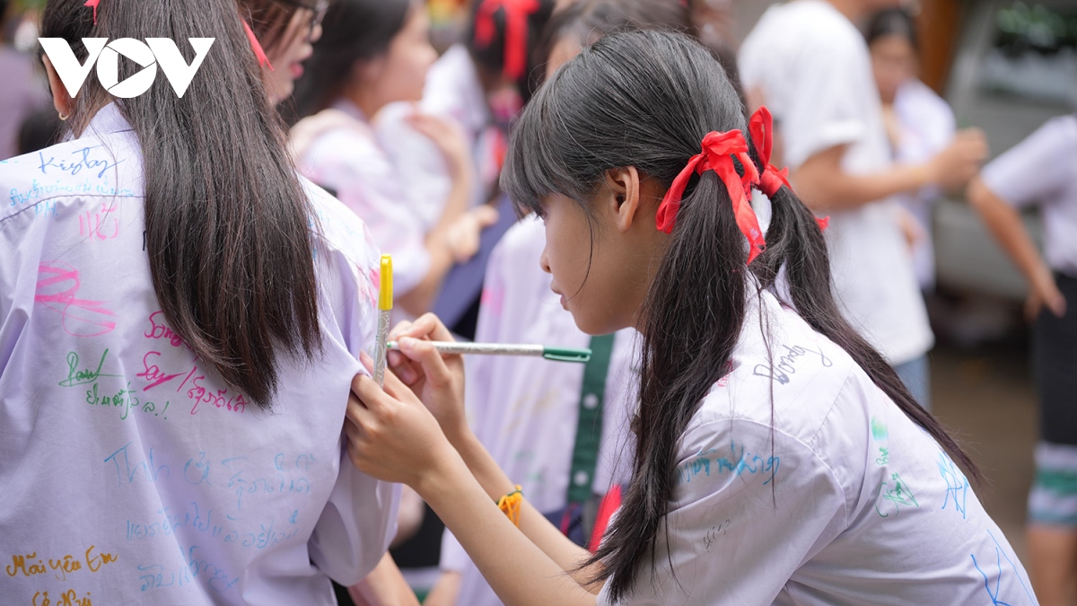 Nhân dịp này, Hội người Việt Nam thủ đô Vientiane và nhà trường cũng đã tặng Giấy khen cho các thầy cô và học sinh đã đạt thành tích tốt trong giảng dạy và học tập trong năm học 2023-2024.