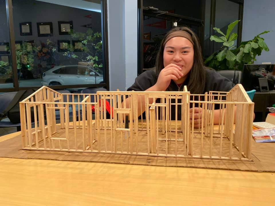 Mô hình thiết kế về ngôi nhà. Thầy Vĩ cho biết, các em biết tính toán con số để có thể tự dựng được ngôi nhà mơ ước nếu có không gian thực hiện |