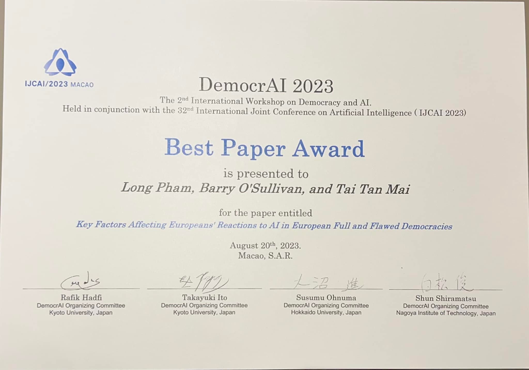 Một bài báo khoa học của TS Phạm Thanh Long và đồng nghiệp được giải thưởng Best Paper Award.