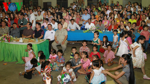 Ngay từ 18h, hàng ngàn cháu thiếu niên nhi đồng đã đến tham dự “Đêm hội trăng rằm”, được tổ chức tại Trường Mẫu giáo Tiểu học Trung học cơ sở Nguyễn Du ở Vientiane, trường do Hội người Việt Thủ đô Vientiane sáng lập.