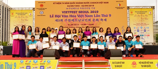Nhân dịp này, Hội người Việt Nam tại Hàn Quốc cũng vinh danh các cá nhân, tập thể có những đóng góp cho cộng đồng người Việt Nam tại Hàn Quốc nói chung và Lễ hội văn hoá Việt Nam năm 2019 nói riêng.